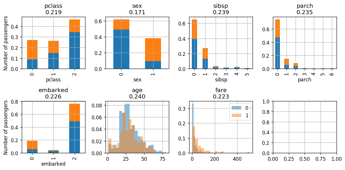 - Classifing embarked according to: {1: [0], 0: [1, 2]}
